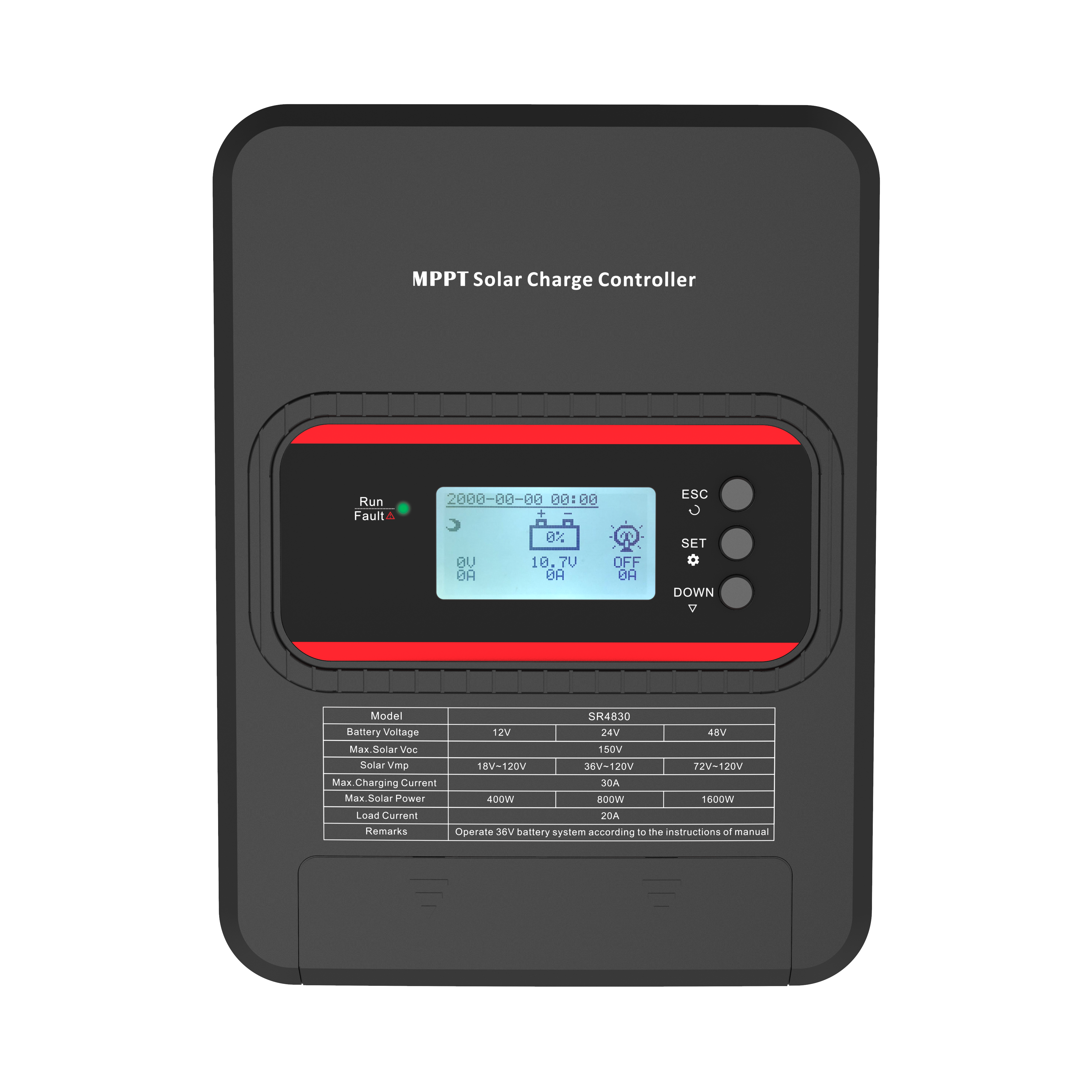 SR系列MPPT太阳能充电控制器采用业界领先的峰值功率点追踪技术,实现太阳能电池板的峰值能量追踪,使其在任何环境下均能快速、准确追踪到太阳能电池的峰值功率点,实时获取太阳能电池板的峰值能量,显著提高太阳能系统能量利用率,是传统太阳能充放电控制器的升级替代产品。该产品能将太阳能电池发出的直流电有效的储存在蓄电池中,可有效地解决常规电网不能覆盖的偏远地区及旅游地区的生活和工业用电。